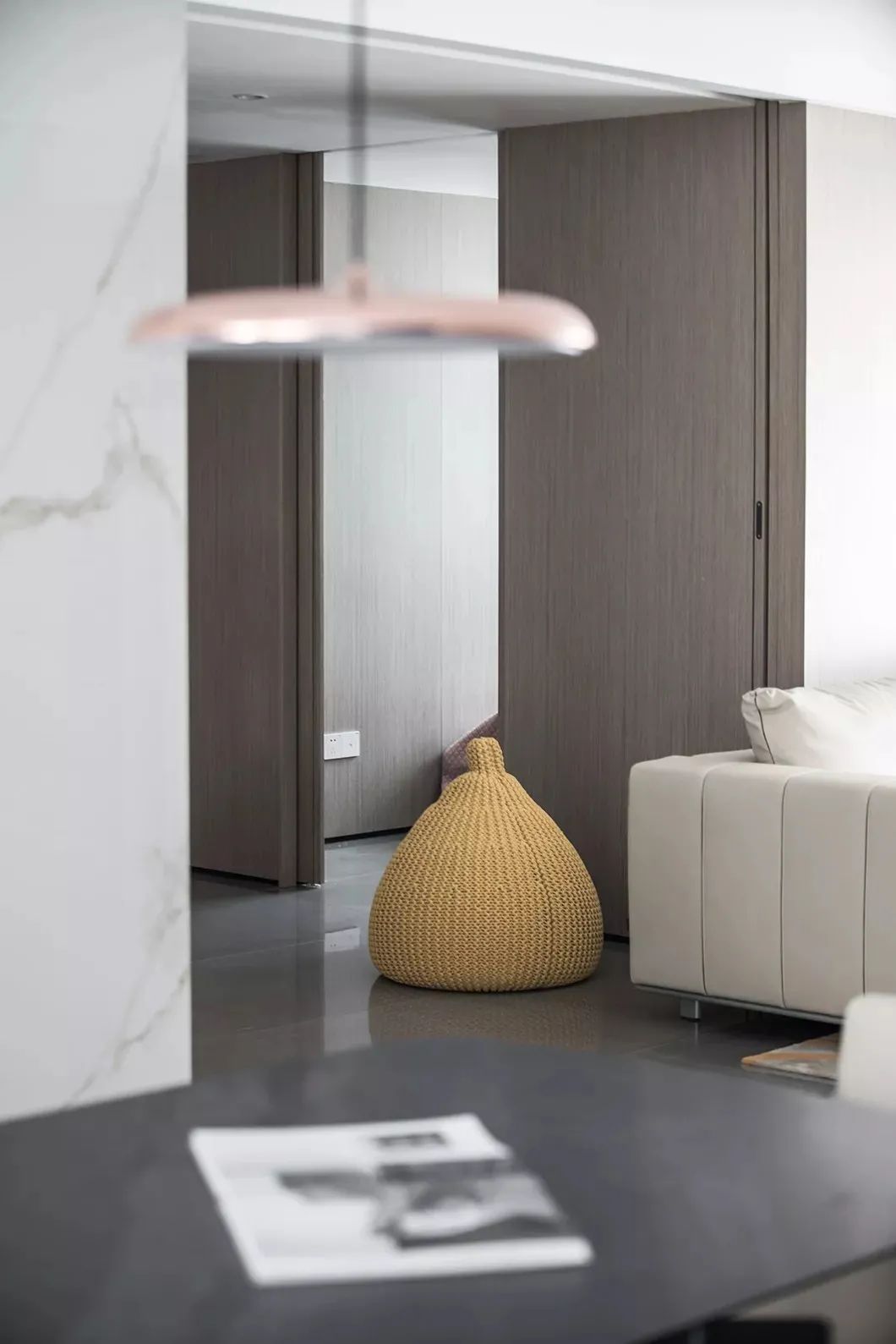 ▲客厅整体现代大方的空间基调,布置上舒适华丽的家具软装与细节装饰,在无主灯的空间氛围下,呈现出一种自然优雅的轻松与惬意感。