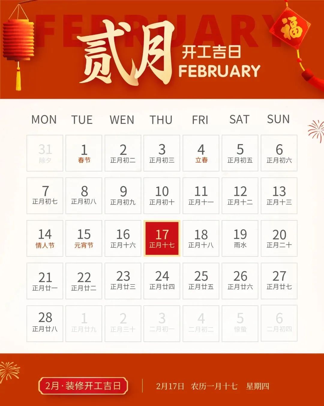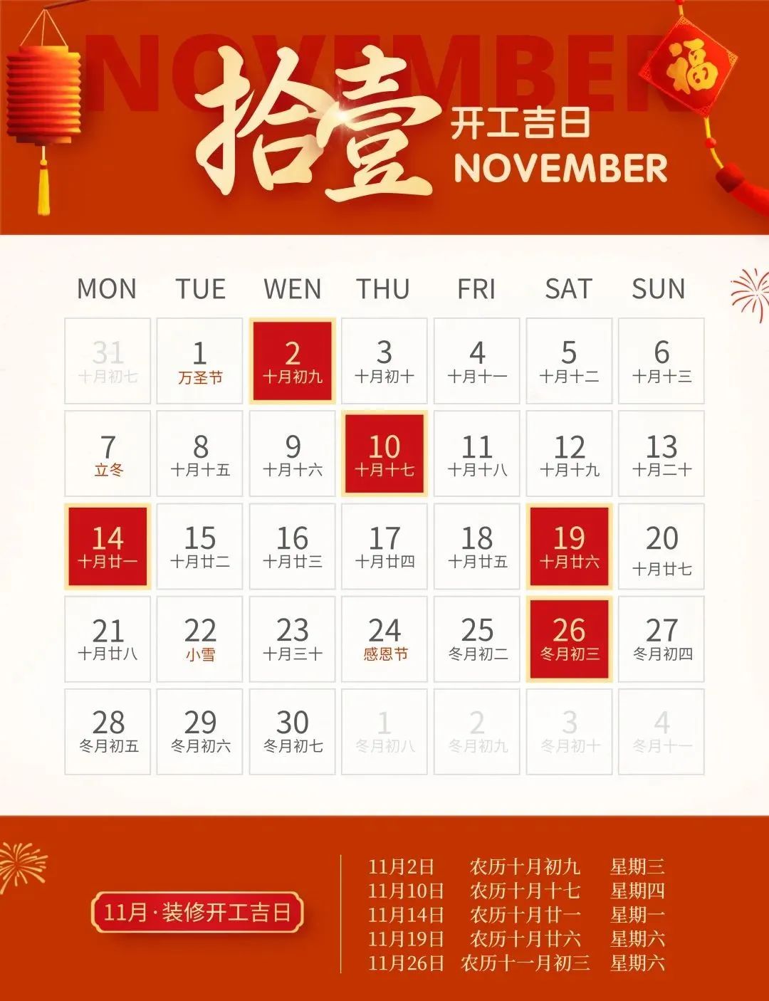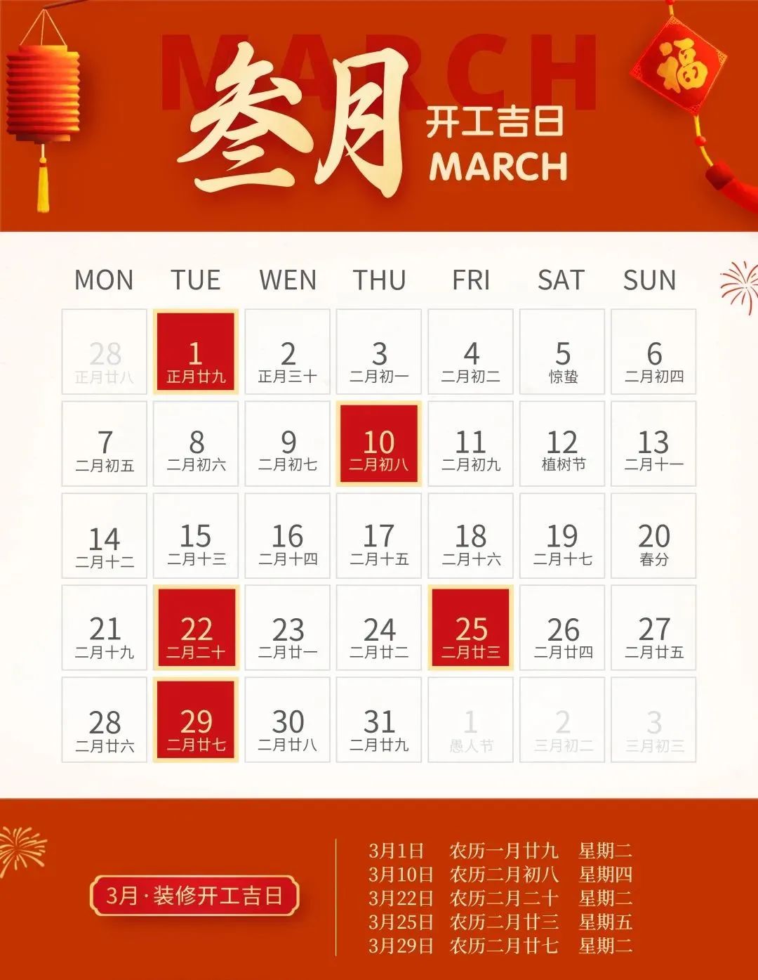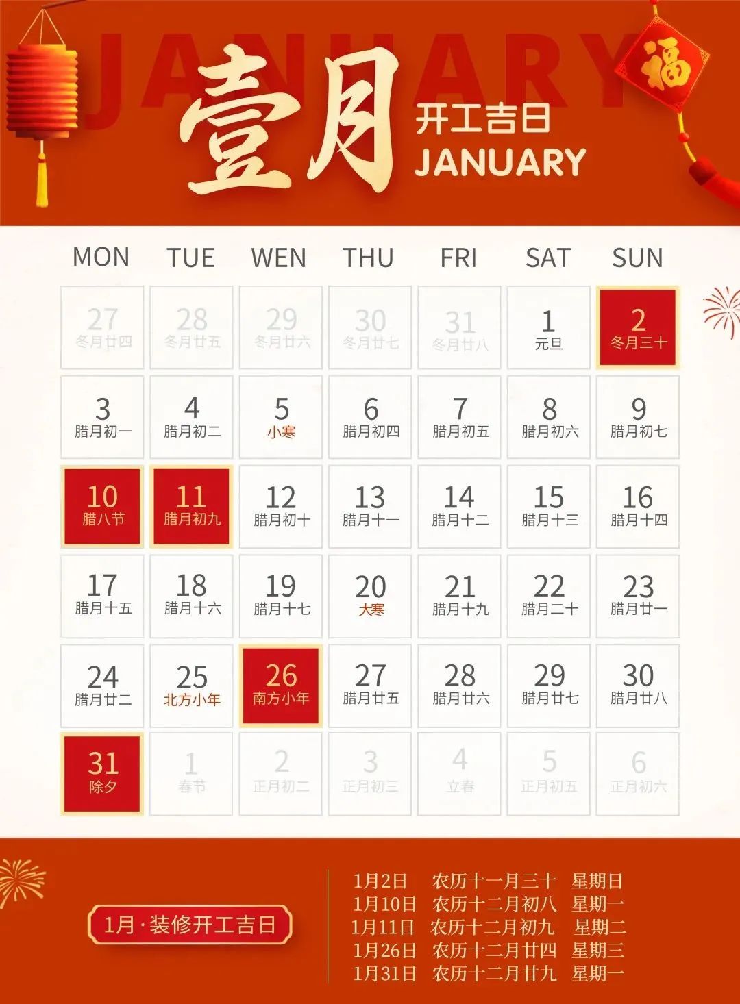 装修就要早做准备,挑一个吉日,图个吉利,更多装修风水、装修知识技巧、装修案例等内容,靓家装饰将持续为您提供。