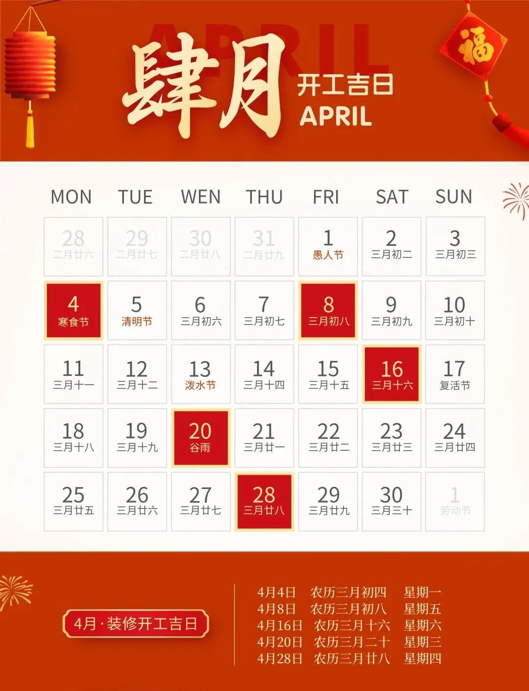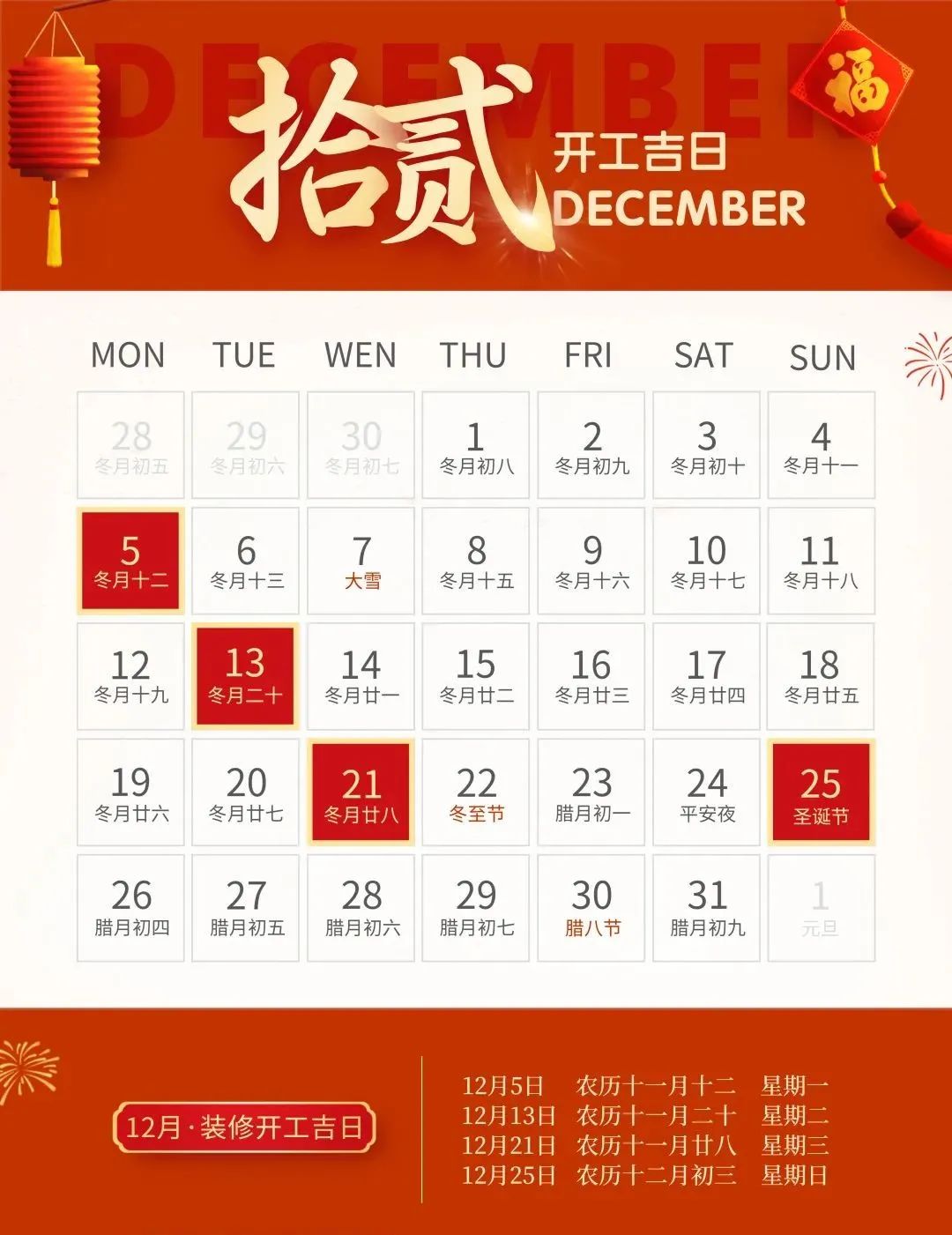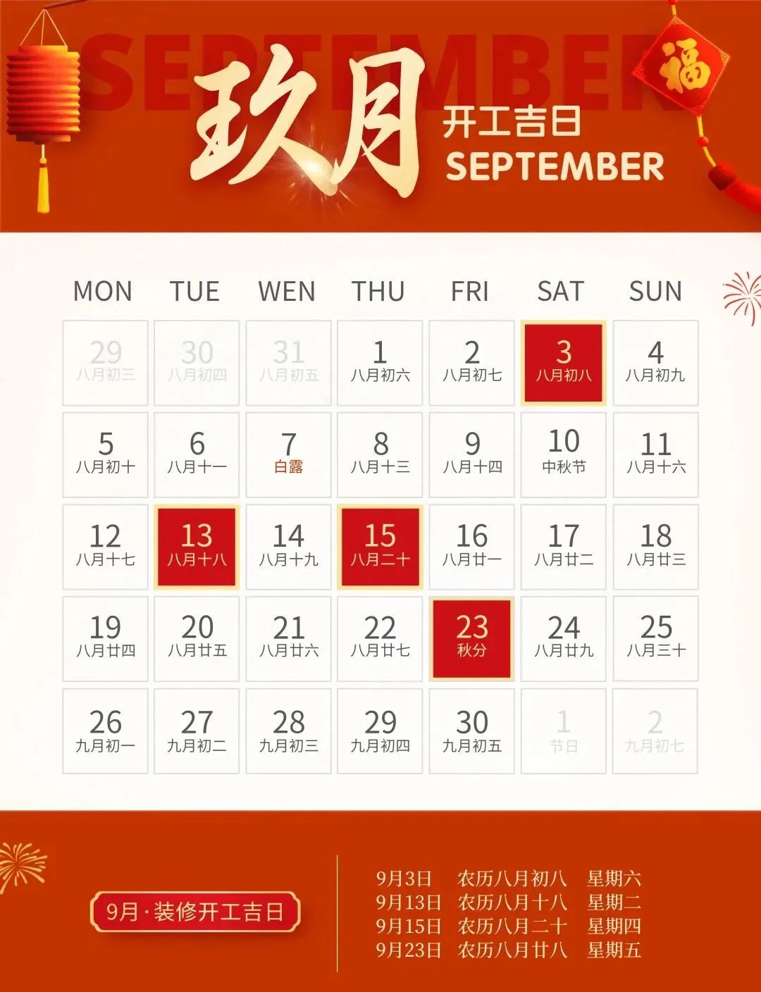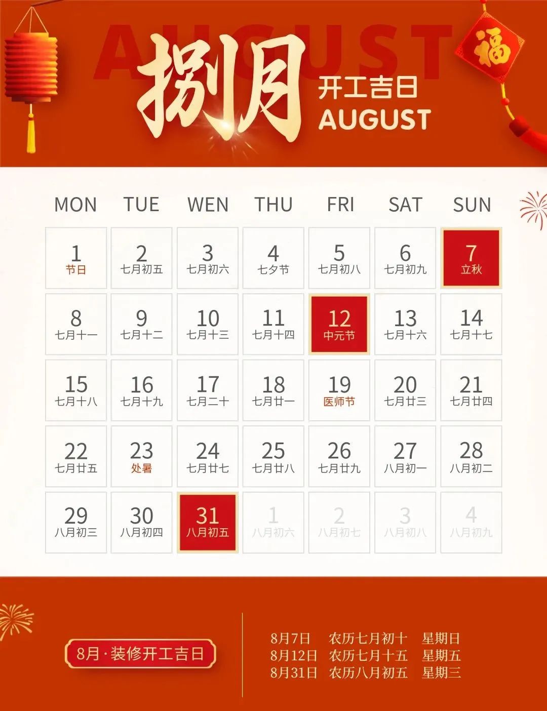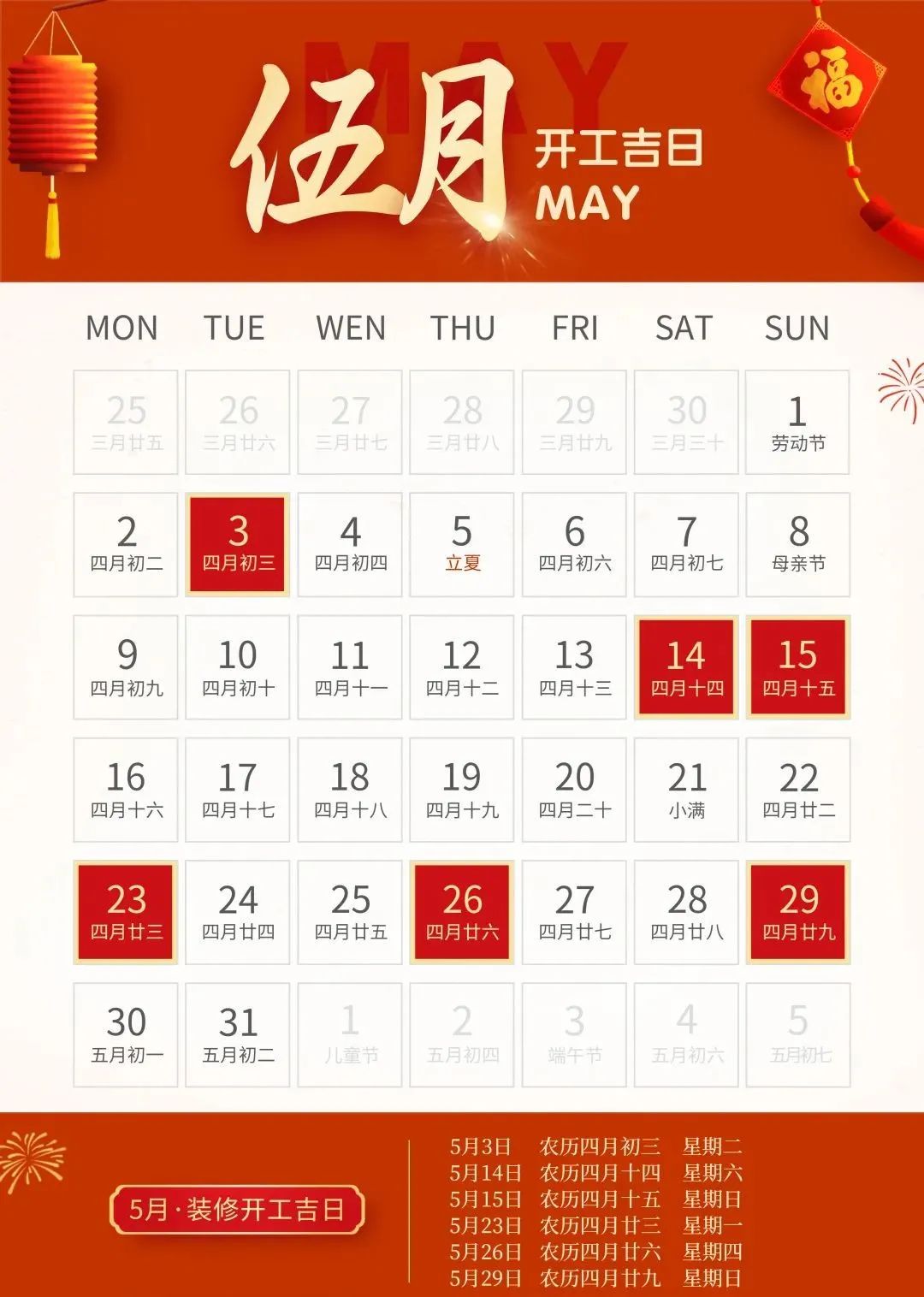 装修就要早做准备,挑一个吉日,图个吉利,更多装修风水、装修知识技巧、装修案例等内容,靓家装饰将持续为您提供。